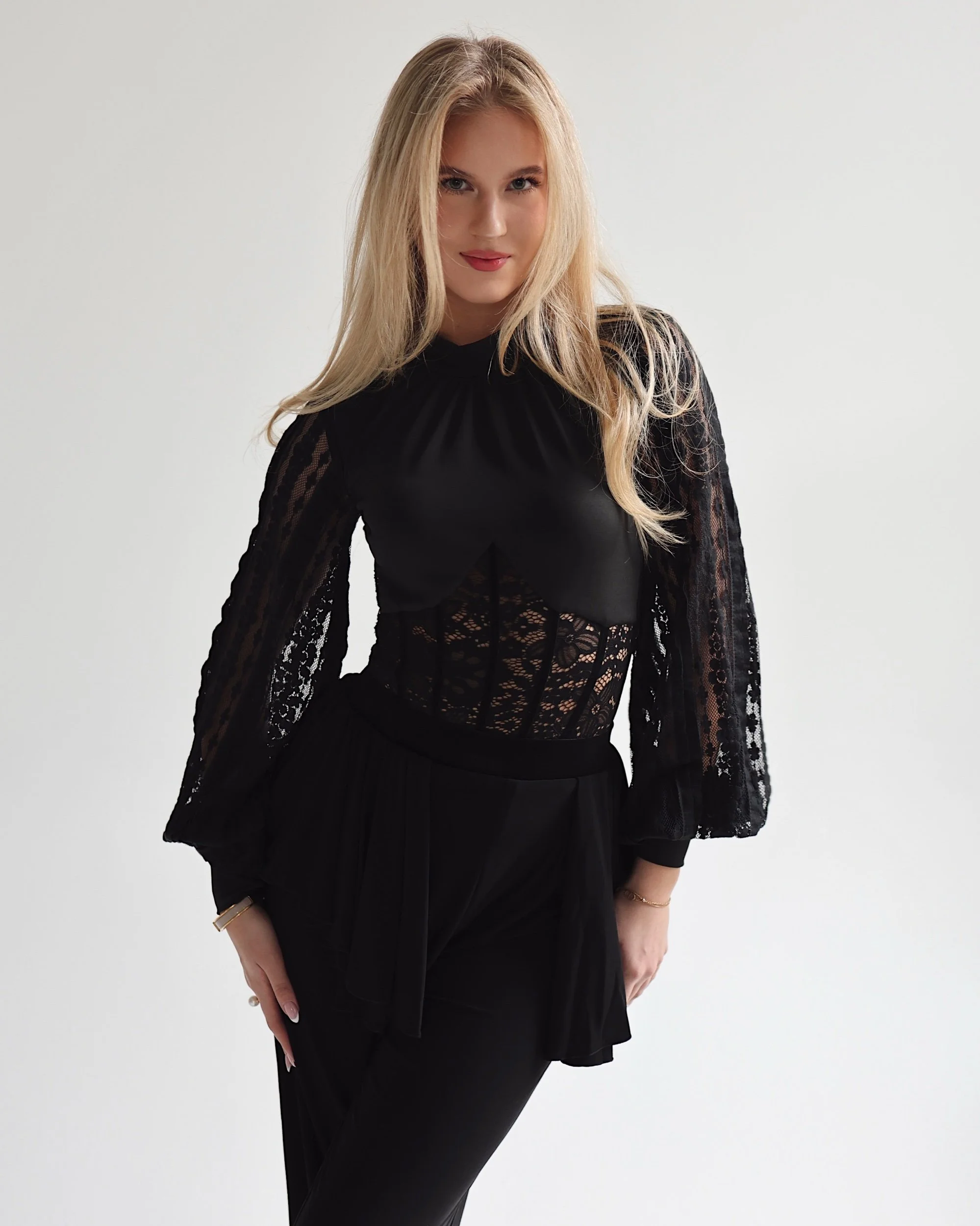 Lace corset-inspired waist panel