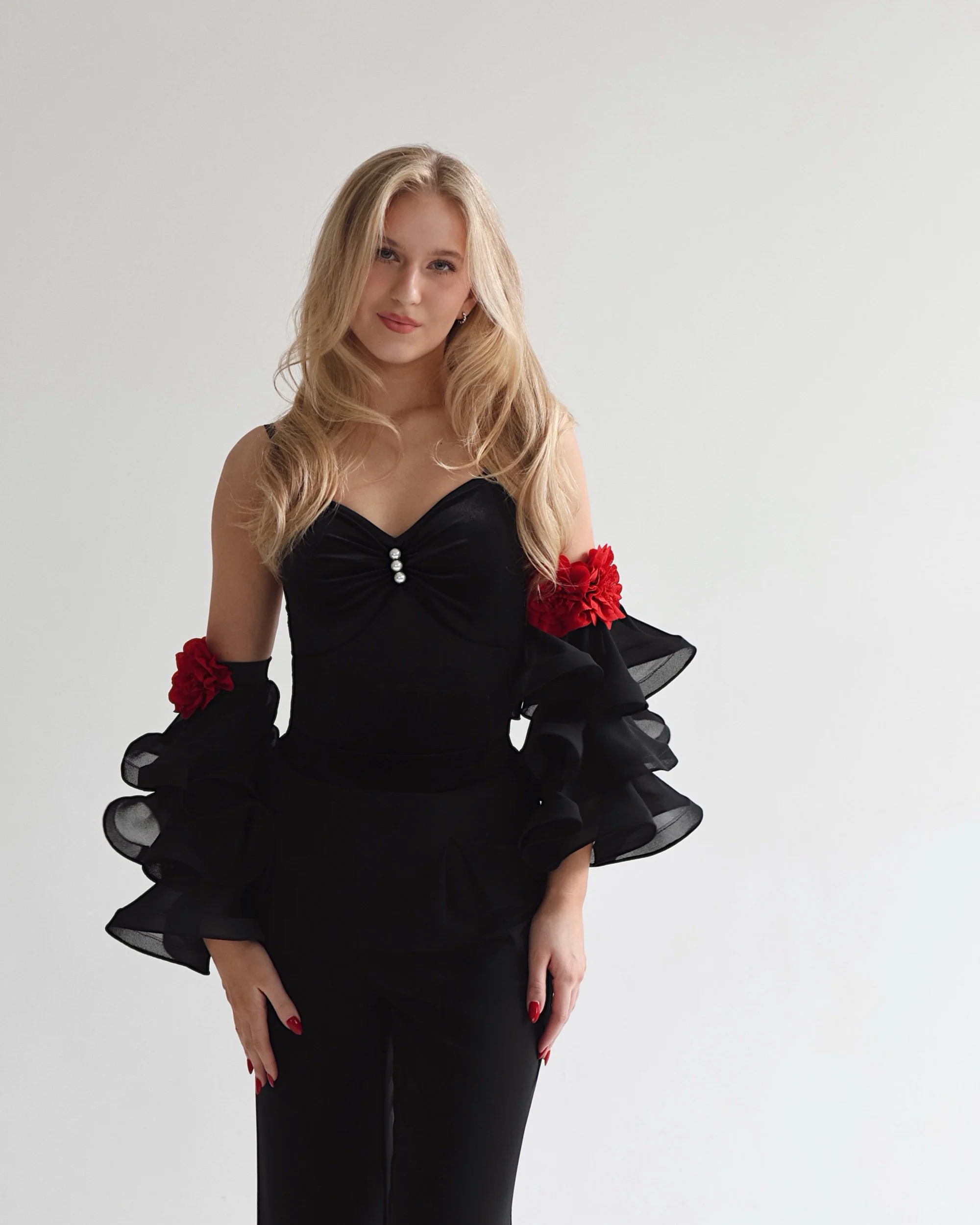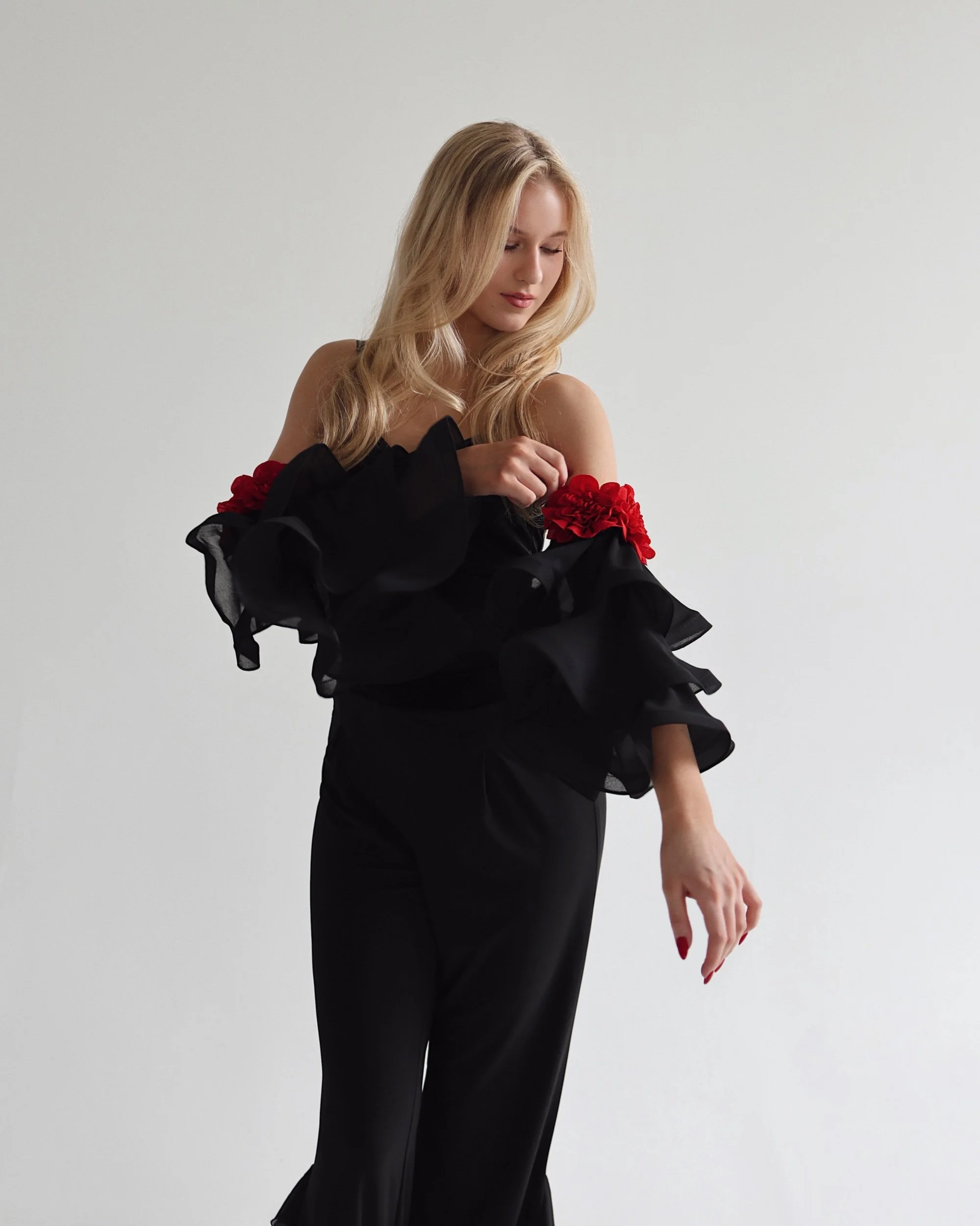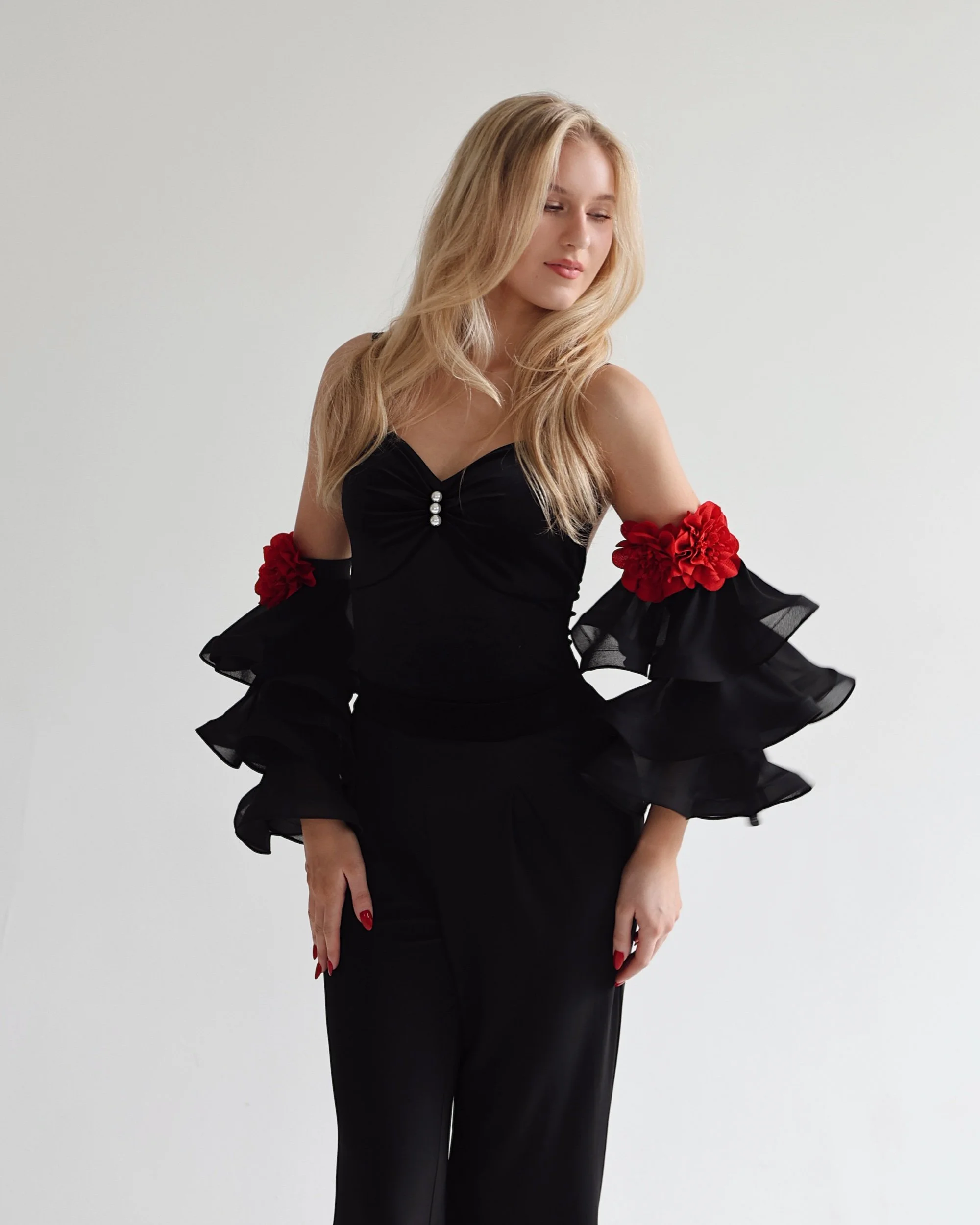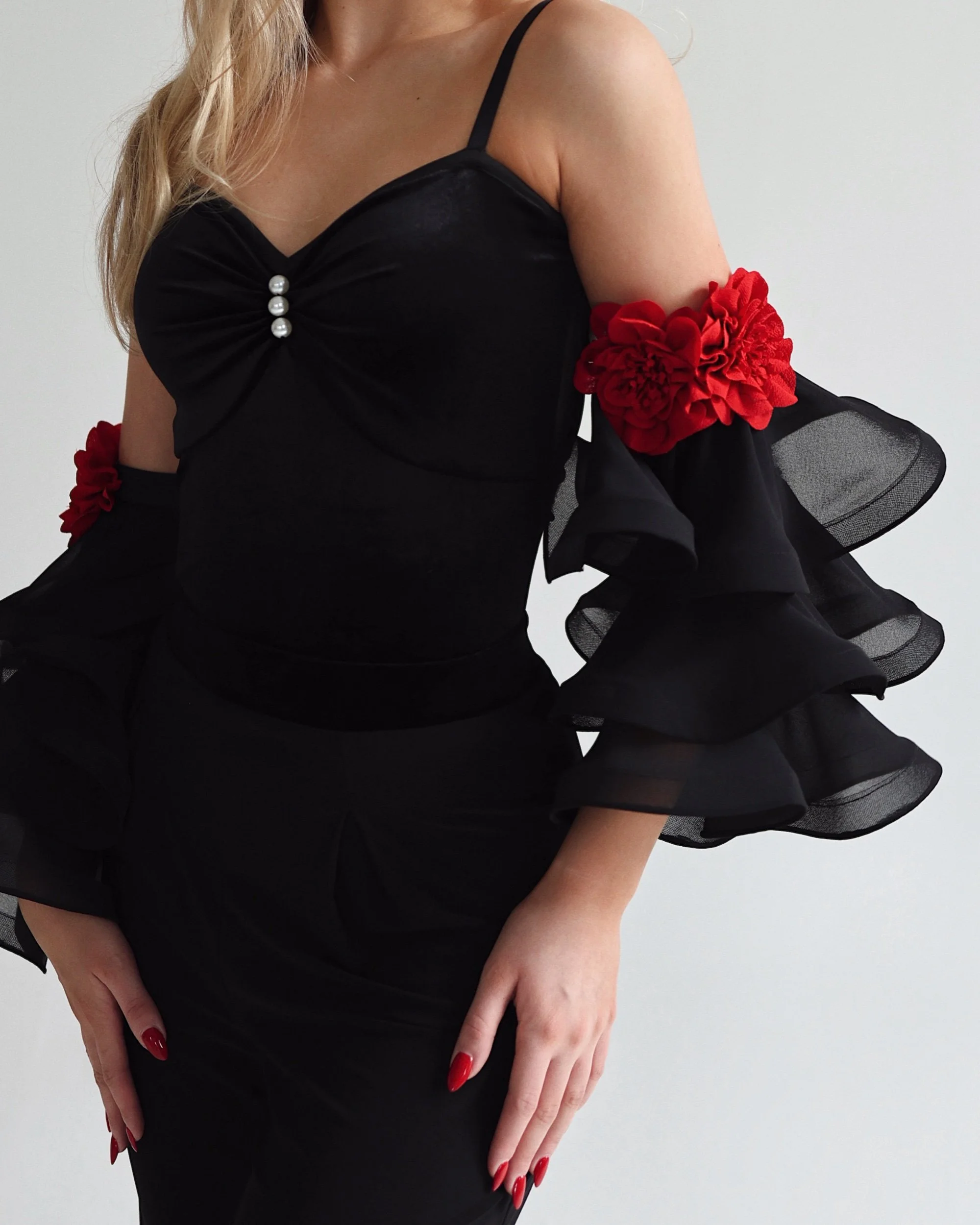 Detachable chiffon sleeves with crinoline and floral details