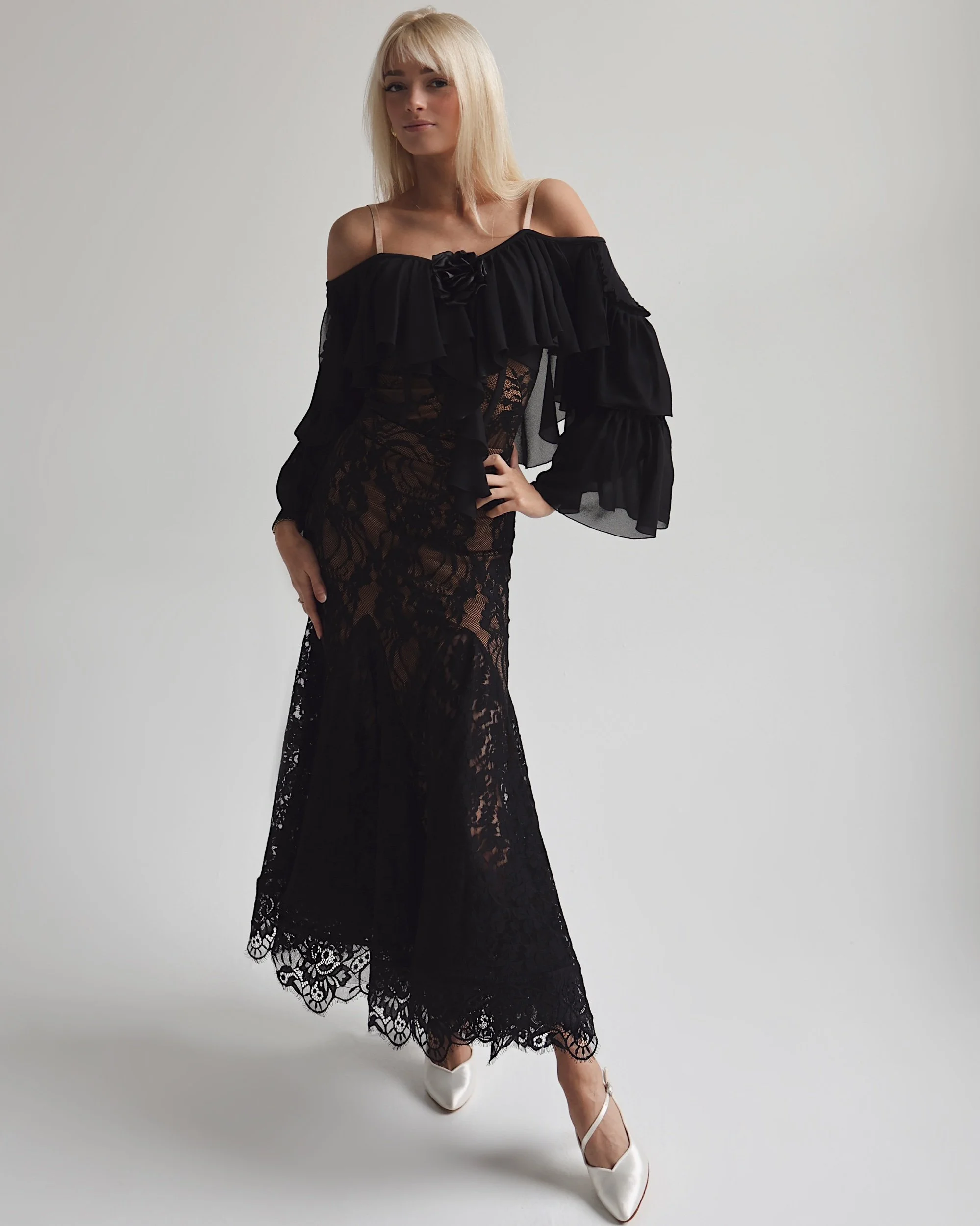 Scalloped lace hemline with crinoline