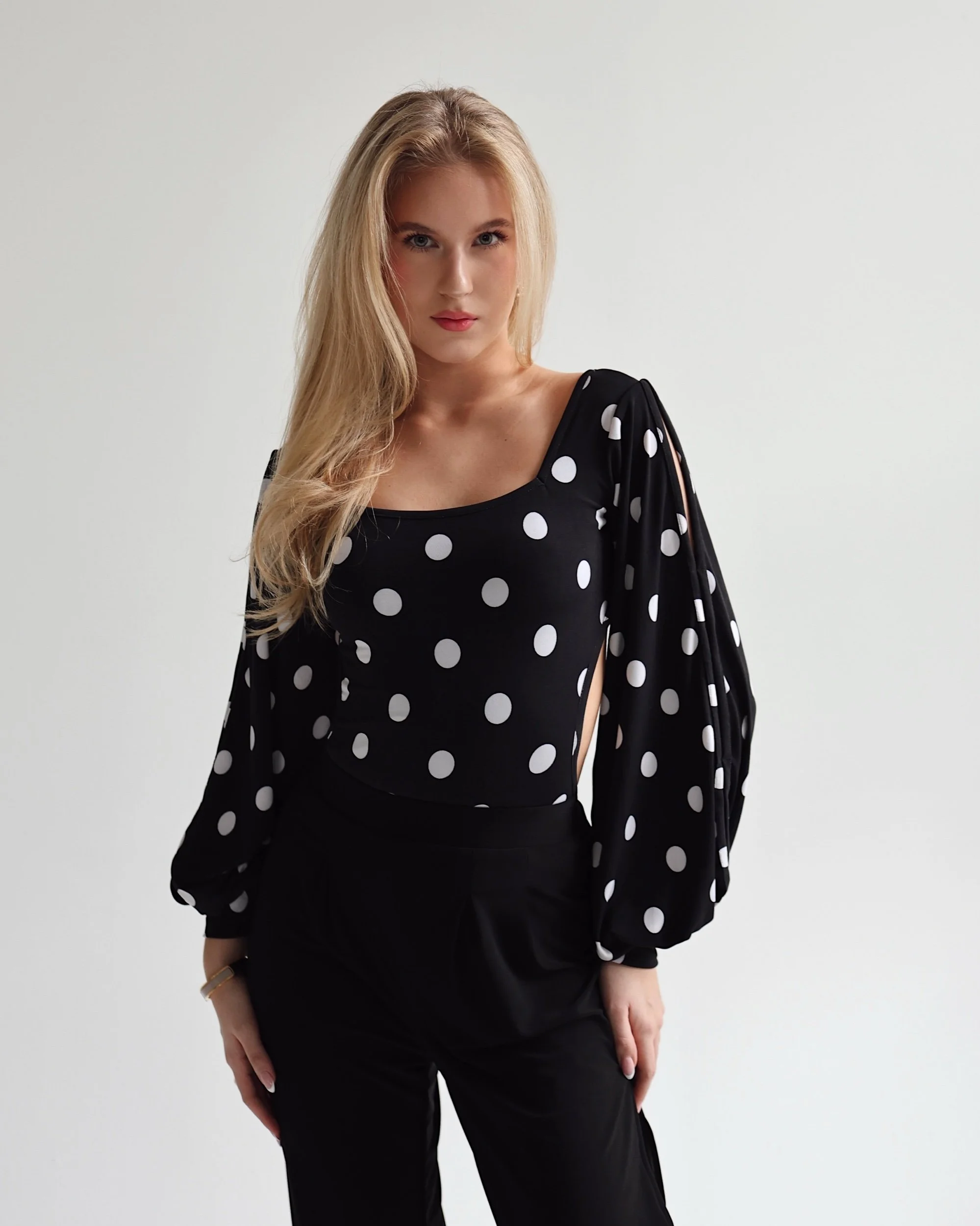Black-and-white polka dot print