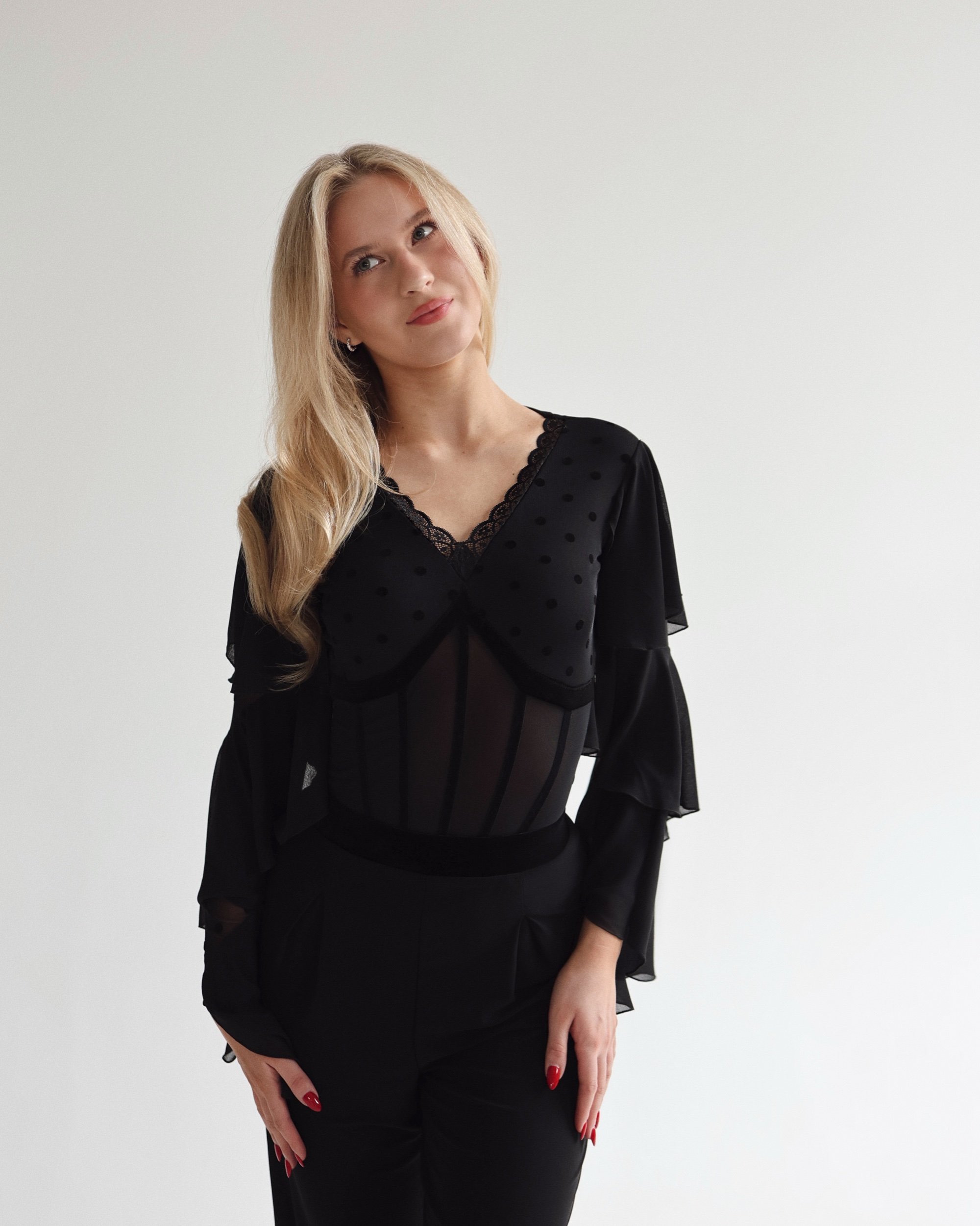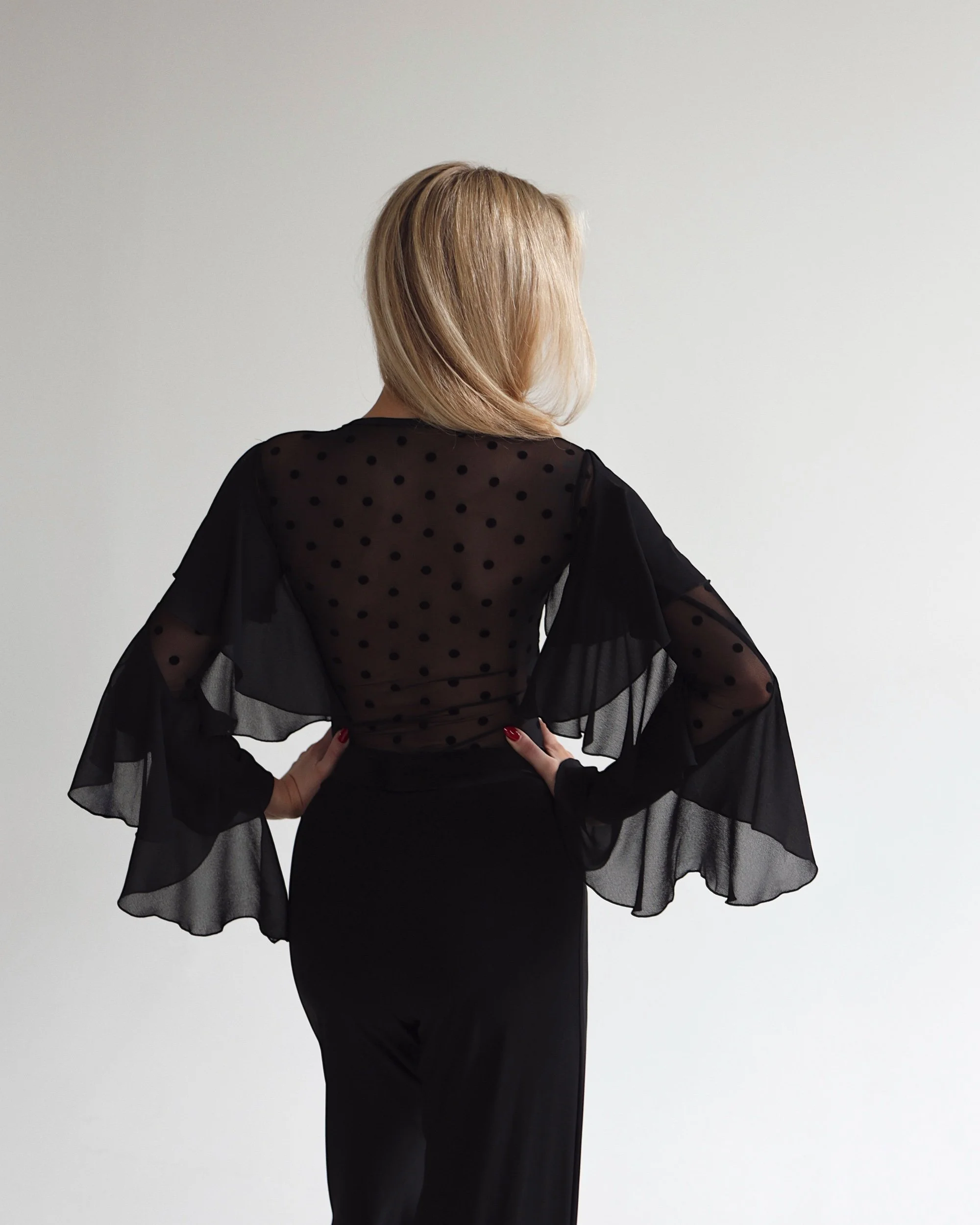 Long sleeves with chiffon layered flounces