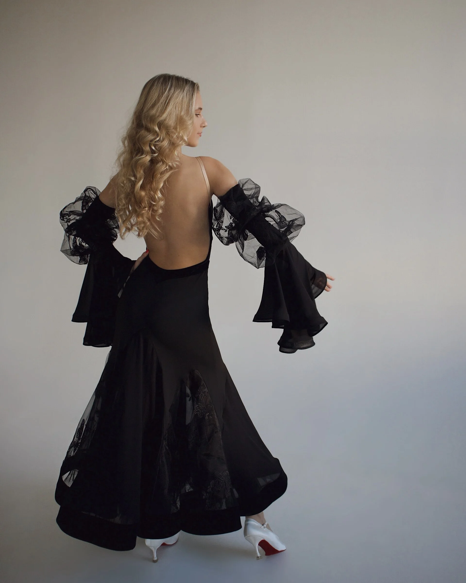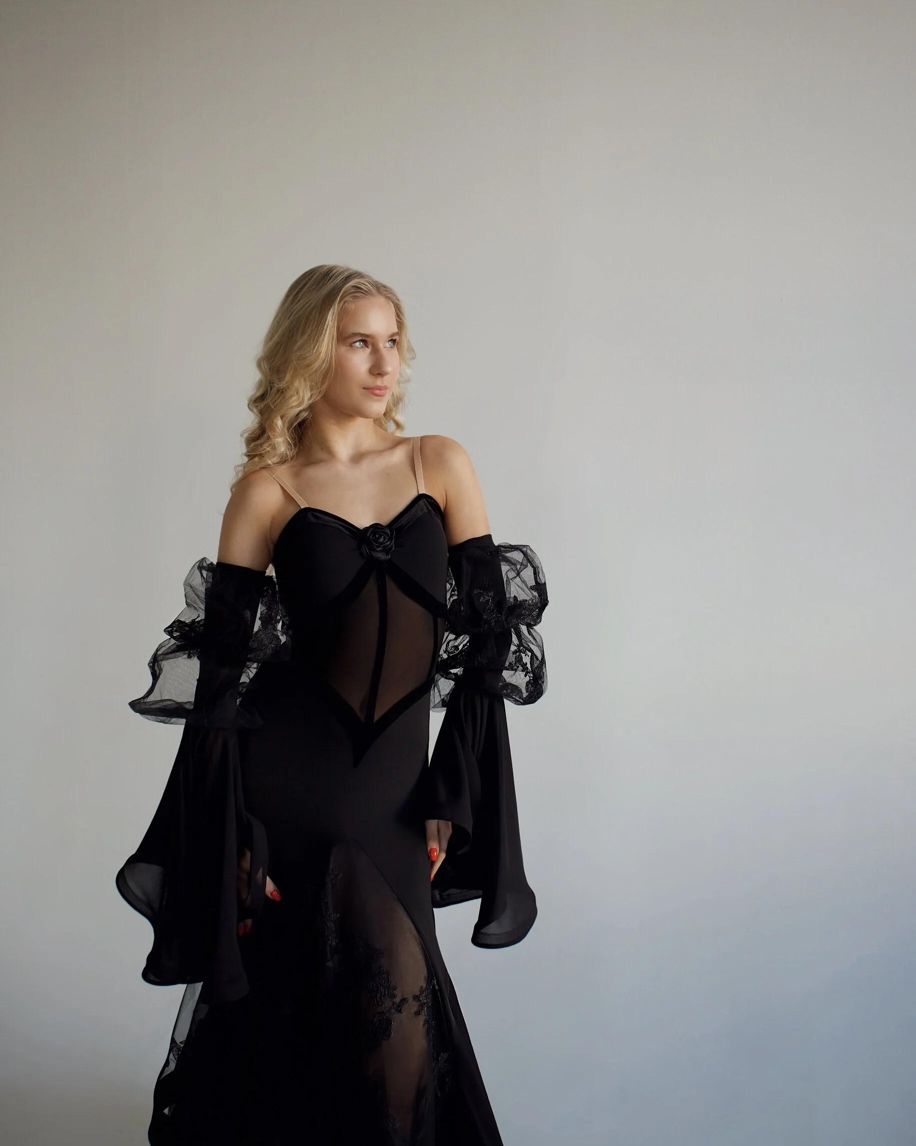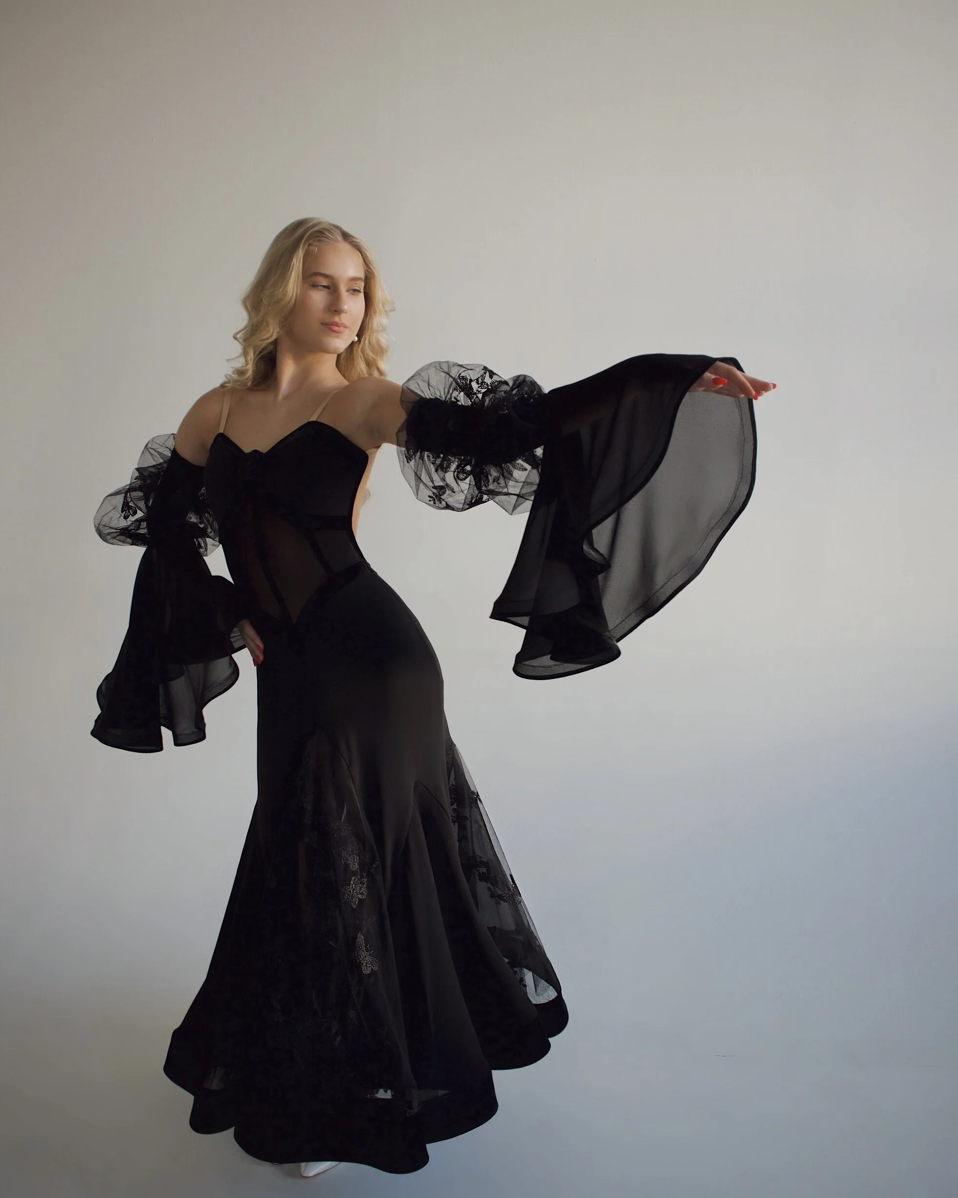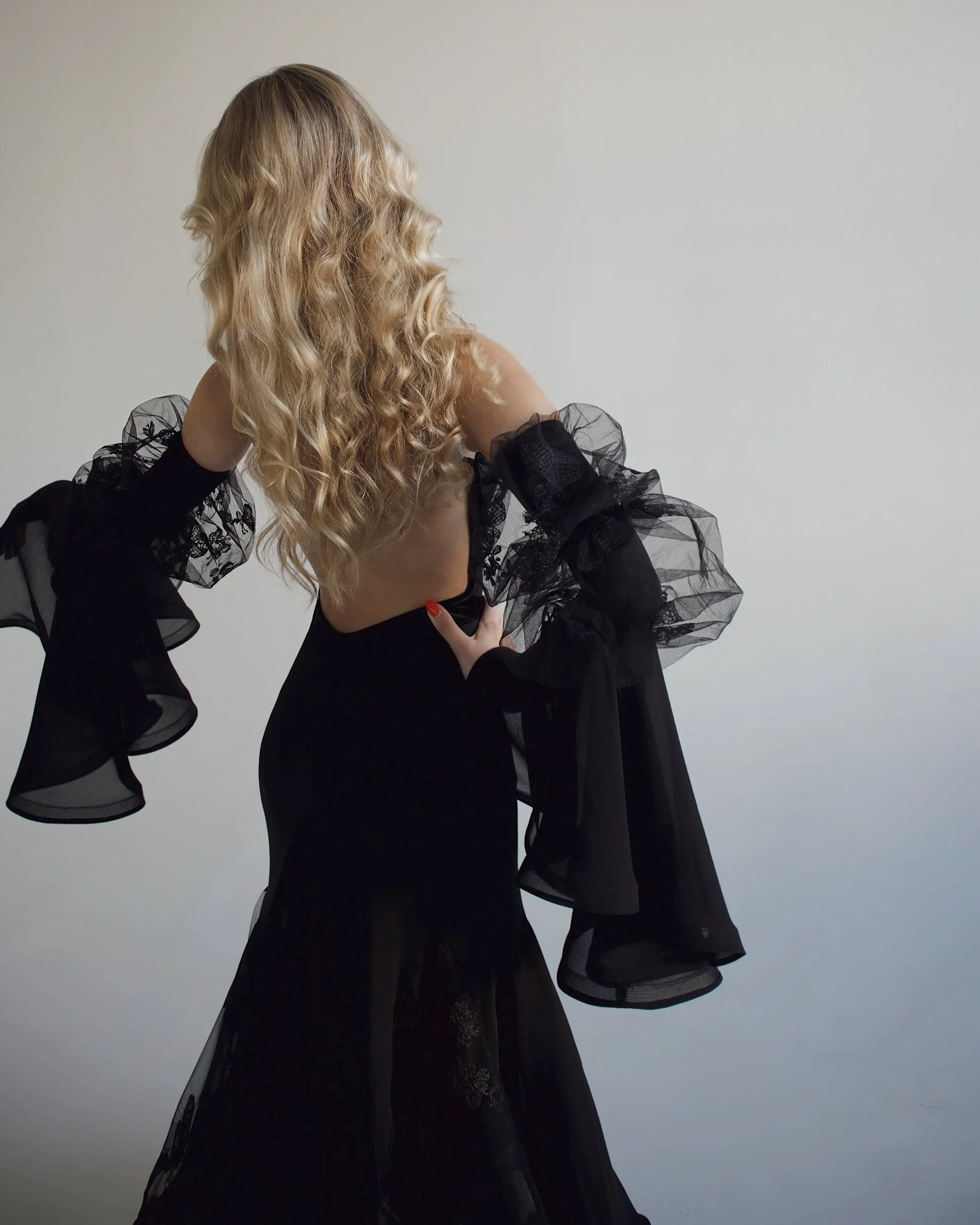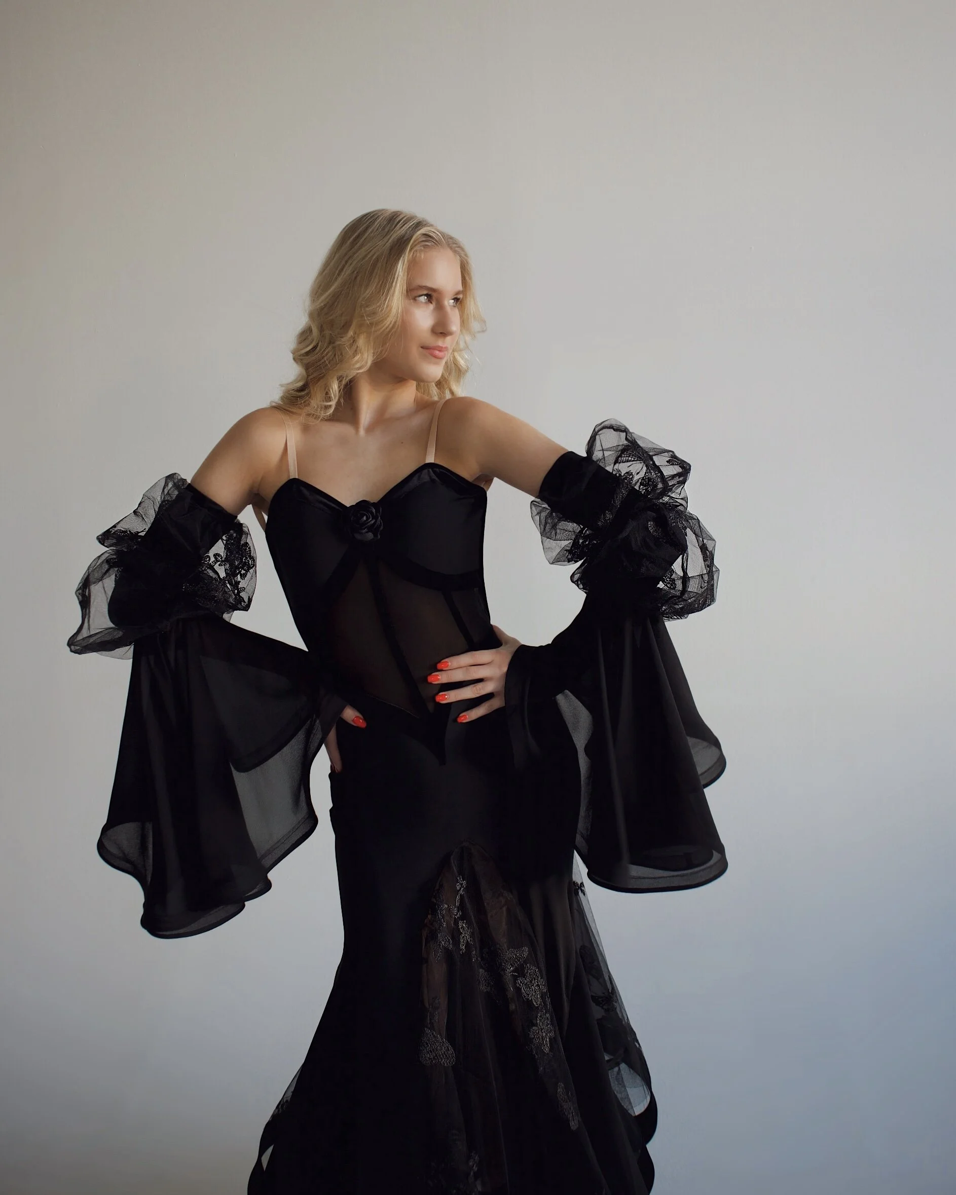 Adjustable puff sleeves with chiffon wings and lace