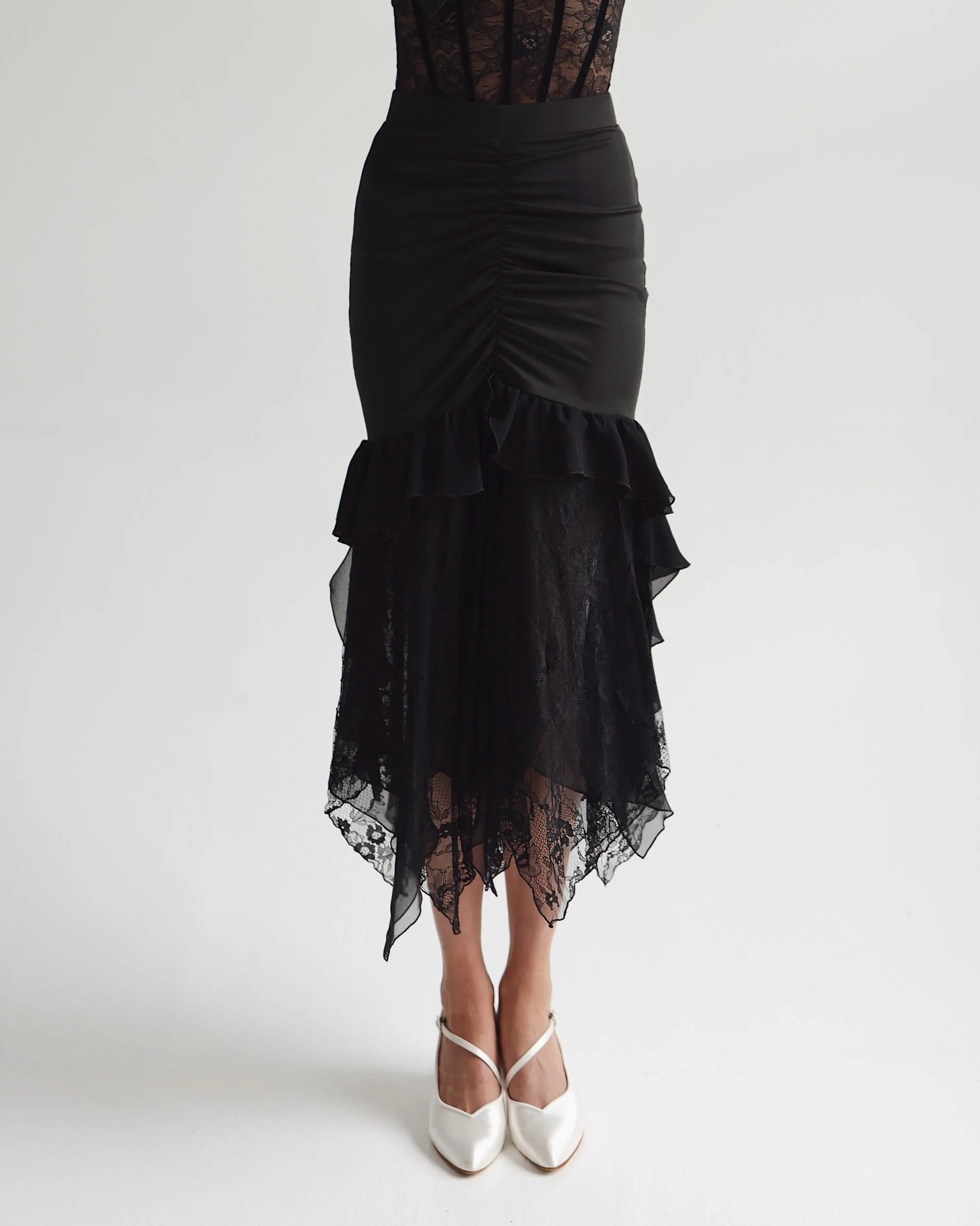 Layered lace and chiffon hemline
